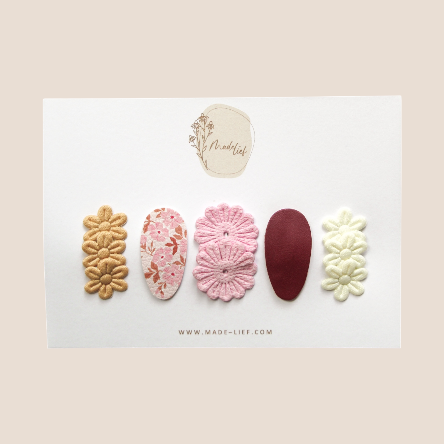 Een perfecte mix set met vijf hele leuke speldjes. De speldjes zijn van een speciaal antislip soort, waardoor ze heel stevig blijven zitten in de allerkleinste en fijnste lokjes. Het speldje gaat aan de zijkant open.