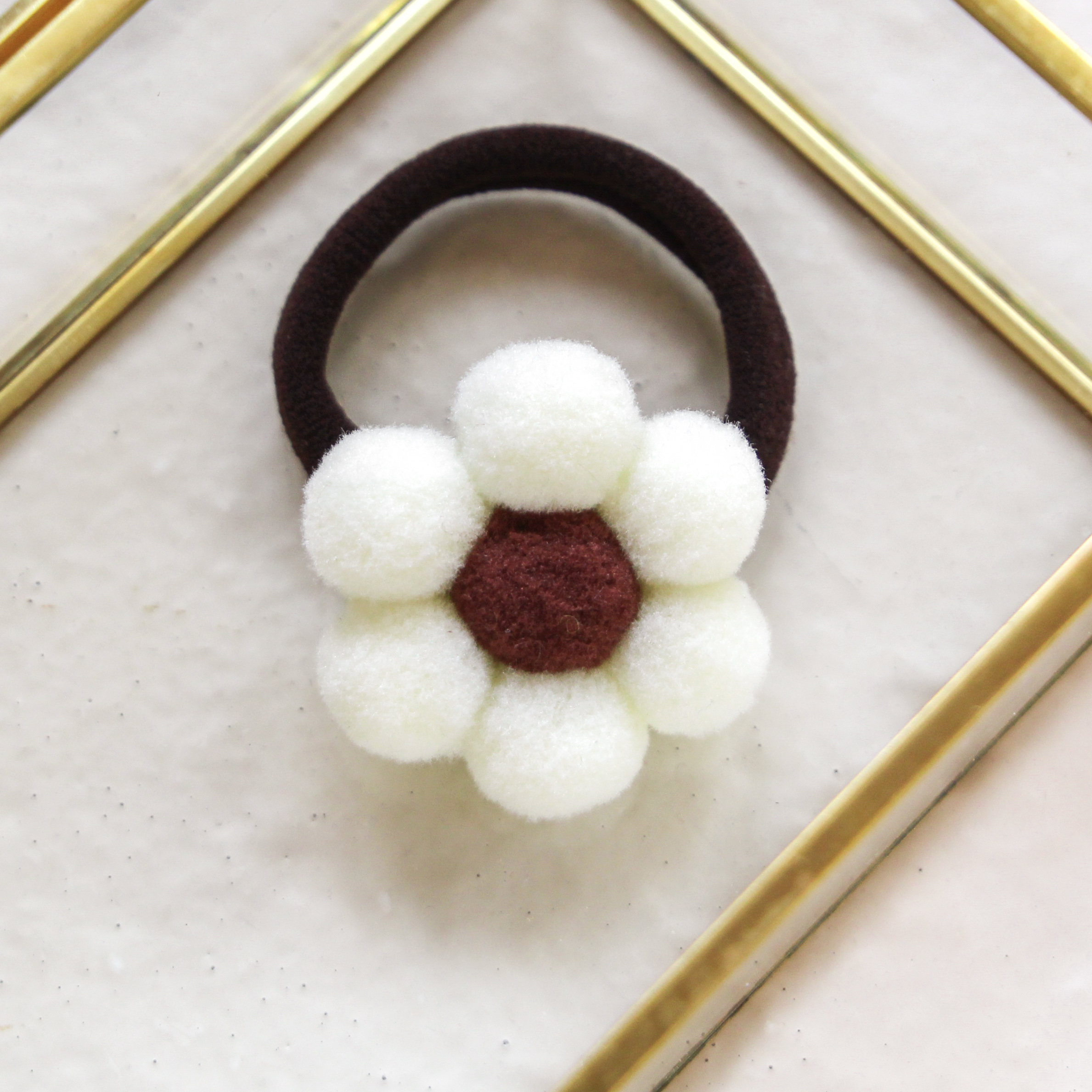 Deze geweldige grote pompon bloem is een eyecatcher in de haren! De bloemen zijn bevestigd op een groot elastiek en daarmee niet geschikt voor eerste staartjes.