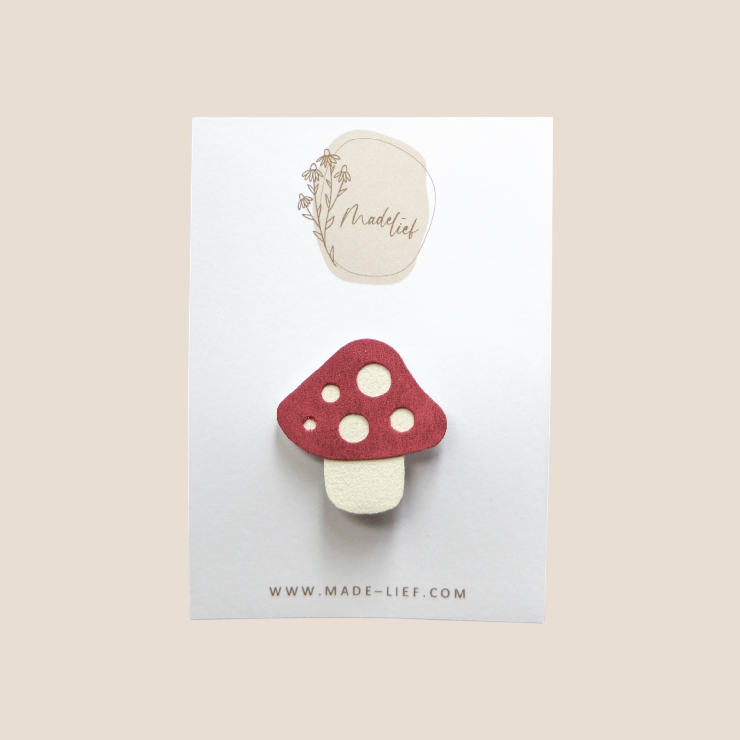 Er kan gekozen worden voor een klikklak, alligator of antislip speldje om de paddenstoel op te bevestigen. Bij elke gekozen optie wordt het speldje blind onder de paddenstoel bevestigd zodat deze niet meer zichtbaar is.