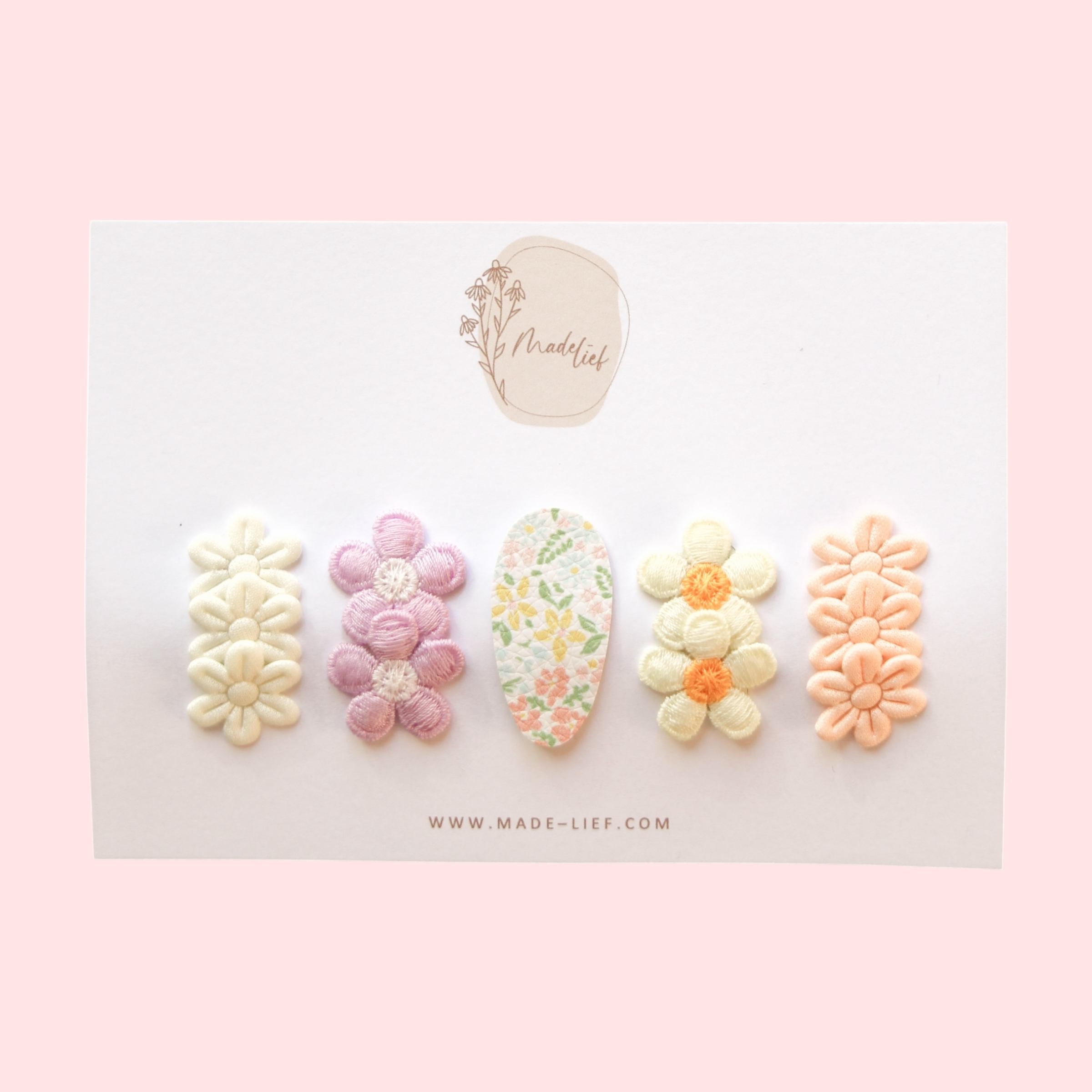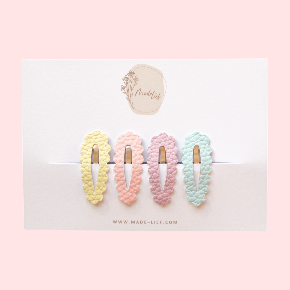 Een perfecte mix set met vijf hele leuke speldjes. De speldjes zijn van een speciaal antislip soort, waardoor ze heel stevig blijven zitten in de allerkleinste en fijnste lokjes. Het speldje gaat aan de zijkant open.