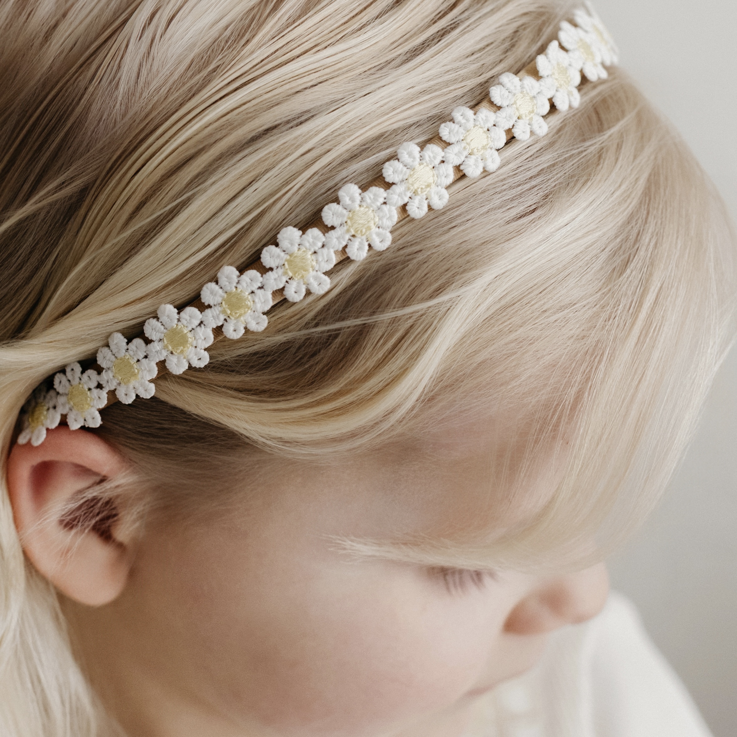 Te dragen vanaf ongeveer 2 à 3 jaar tot oneindig. Het diadeem is lekker soepel en knelt niet achter de oortjes. Maak de look af met een leuk bloemetjes elastiekje of speldje…