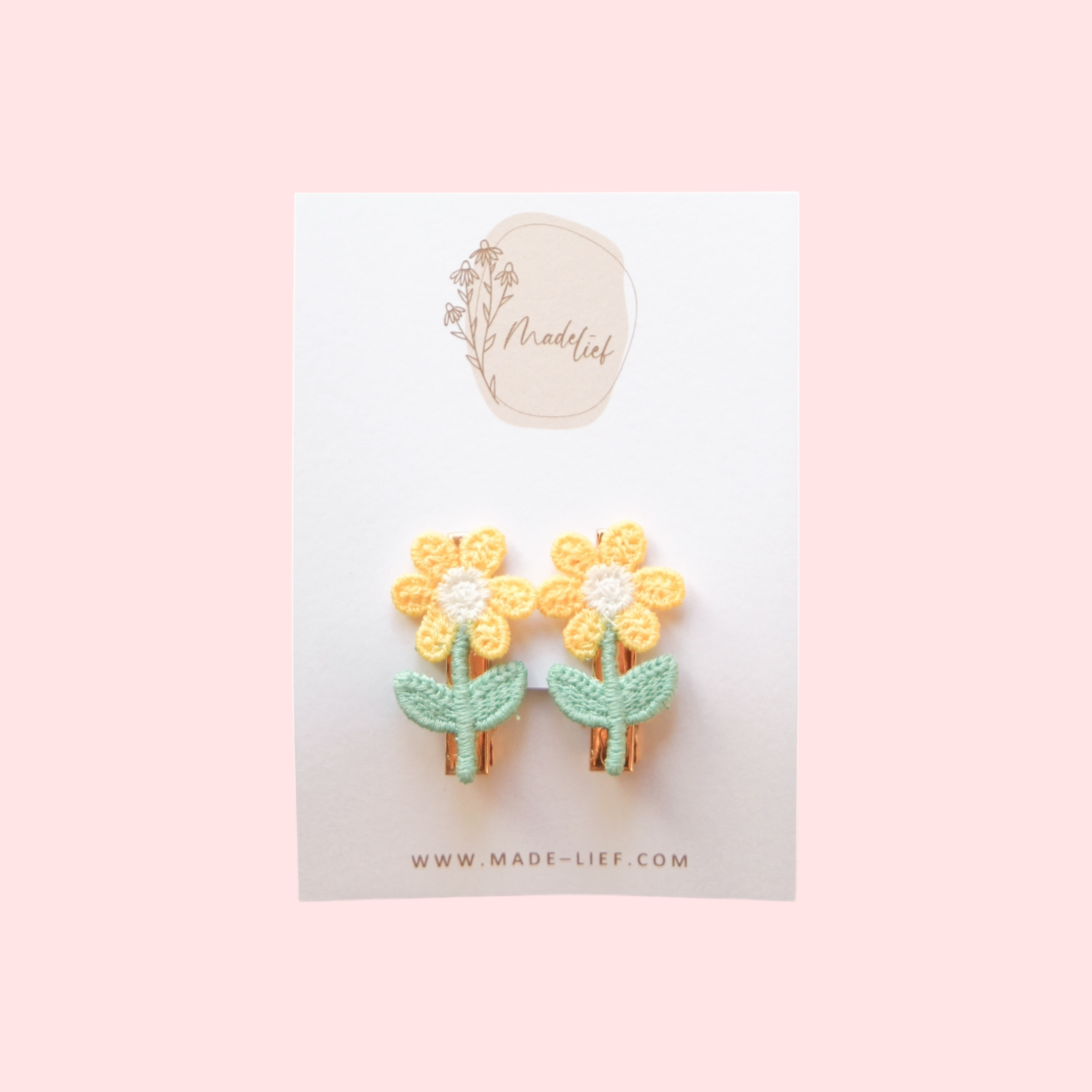De bloemen zijn bevestigd op goudkleurige alligator speldjes van 3,5 cm en blijven goed zitten in zowel dun als dik haar.