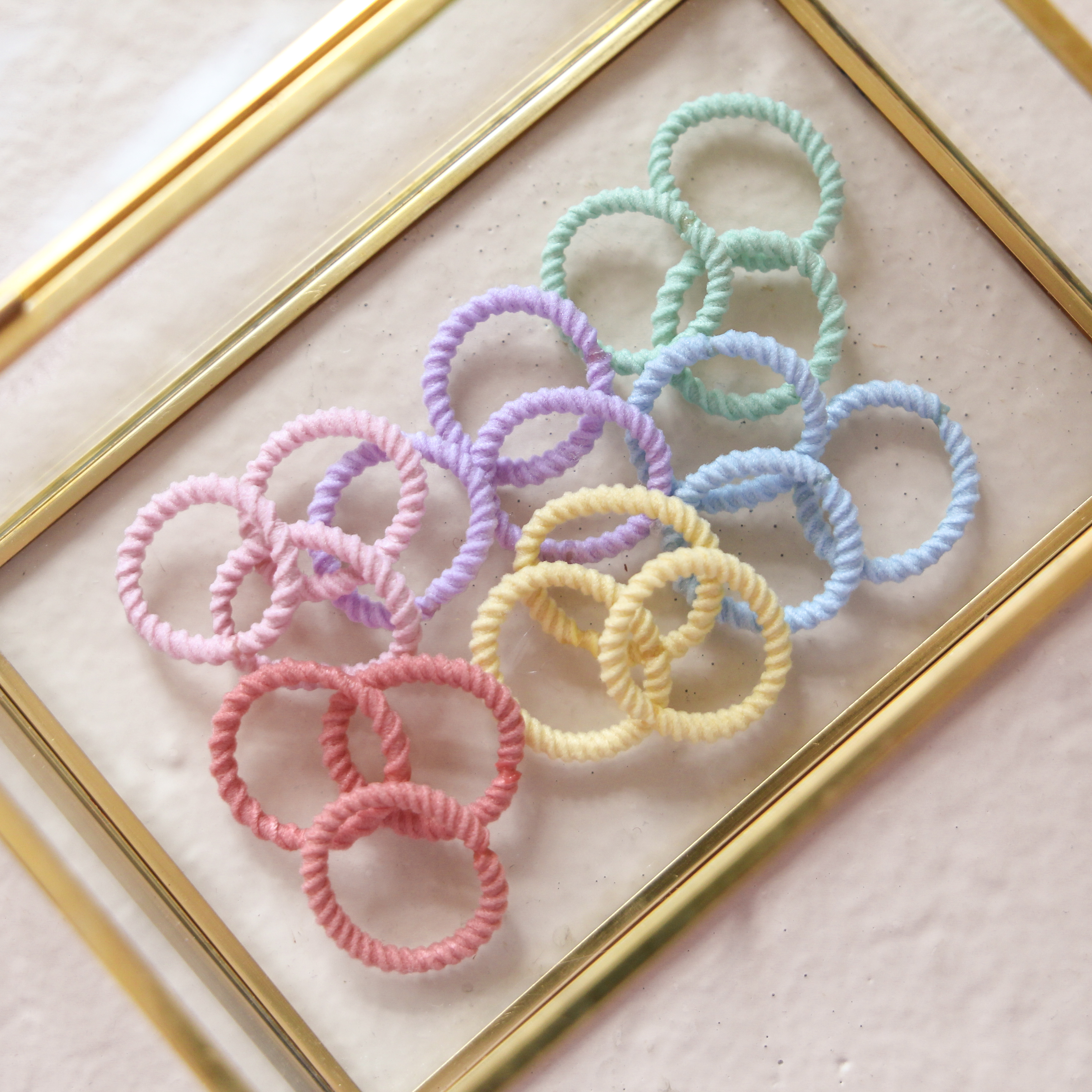 Dé set die elk meisje in haar elastiekjes voorraad moet hebben, met deze set zit je namelijk qua basics altijd goed. De elastiekjes zijn ongeveer zo groot als het topje van je duim en hebben perfecte meisjes kleuren. De elastiekjes zijn geschikt voor de eerste staartjes en dunne haren. De set bestaat uit 18 elastiekjes in 6 verschillende kleuren.