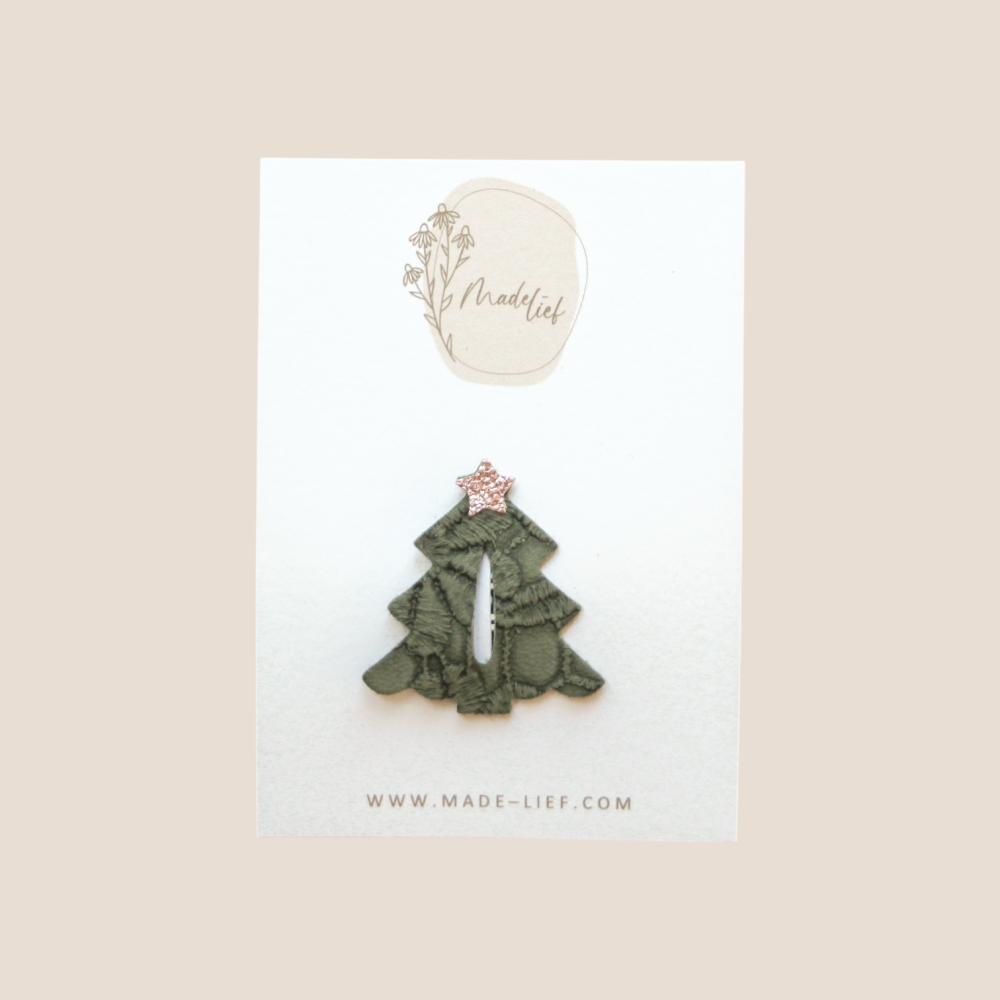 Hoeee schattig is dit? Zet de haartjes van je mini aan de kant met dit lieve kerstboompje! Het kerstboompje is gemaakt op een alligator speldje. Het totale speldje is ongeveer 6 cm lang, de alligator clip is 5 cm.
