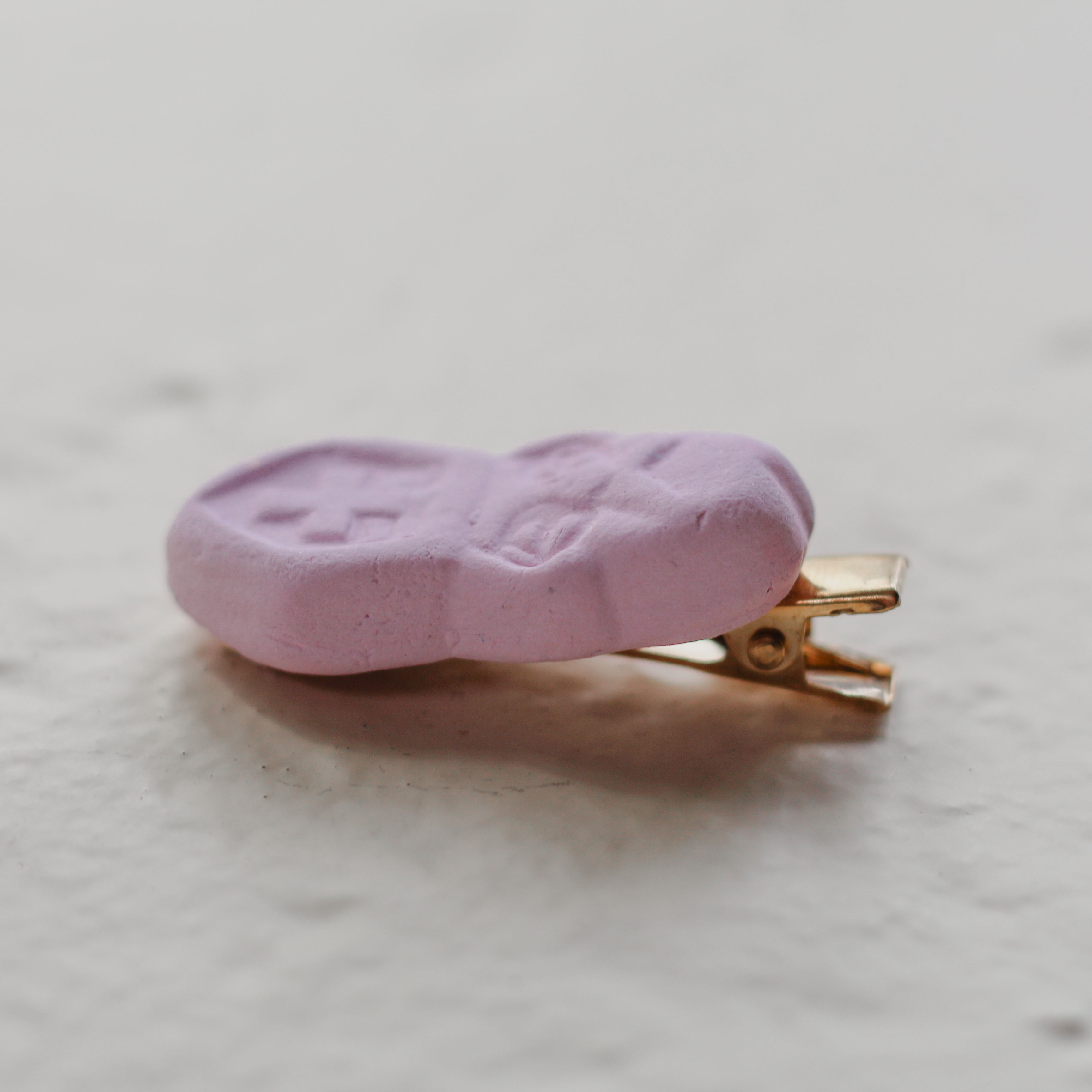 - Klein: 3,5 cm alligator speldje (deze valt volledig onder het schuimpje en zul je dus niet meer zien)